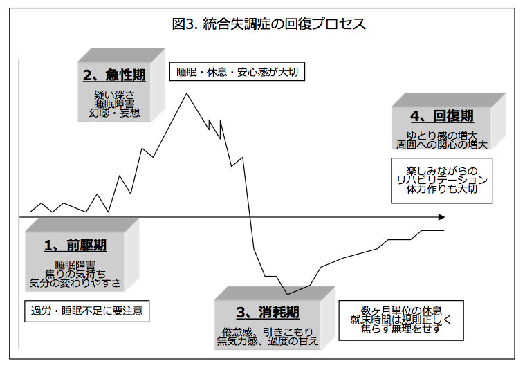 統合失調症の患者さんの経過はどのようなものでしょうか。まずは、発症してよくなるまでの経過を図にすると図3のようになります。