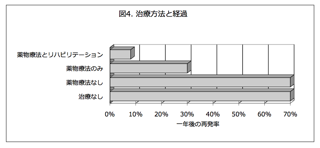 統合失調症は再発することのある慢性疾患です。再発を防ぐための治療方法についていろいろ研究が行われています。図4をご覧ください。
